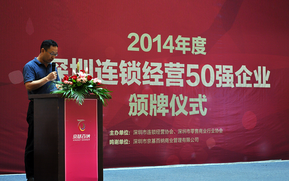 9月16日下午,2014年度“深圳連鎖經(jīng)營(yíng)50強(qiáng)企業(yè)”頒牌儀式在深圳市南山京基百納舉行。來(lái)自市經(jīng)貿(mào)信委、各區(qū)經(jīng)促(服)局等領(lǐng)導(dǎo)以及50強(qiáng)企業(yè)的代表出席了頒牌儀式。雷諾表憑借在零售系統(tǒng)的優(yōu)秀經(jīng)營(yíng)和管理實(shí)力,再次榮獲2014年度“深圳連鎖經(jīng)營(yíng)50強(qiáng)”榮譽(yù)稱(chēng)號(hào)。